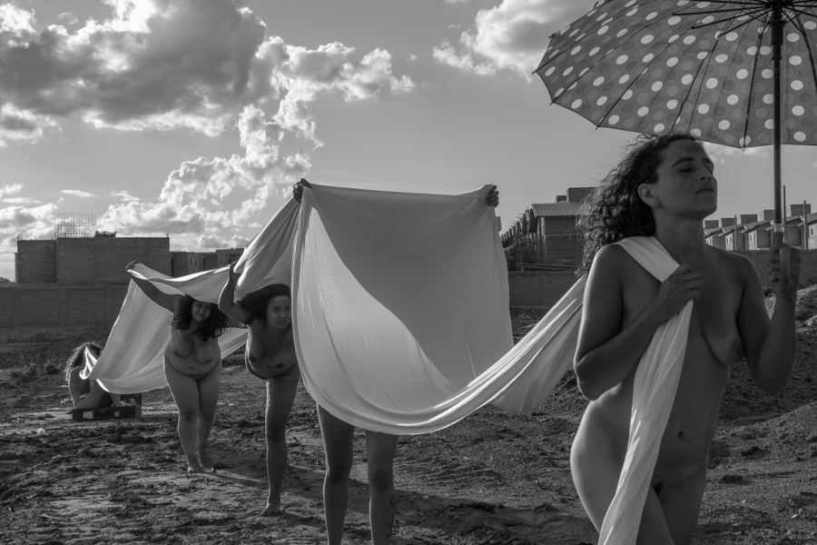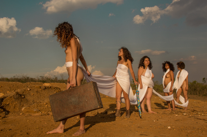 Encontro de mulheres descolonizadoras e um espaço em ruínas. Corpoalmas em transe, em trânsito. Desproporcionais. Uma memória gritante desenhada nos restos de parede que não nos protegia de nada, nem delimitava. Parecia que a terra nos abrigava e compunha com o corpo coletivo uma paisagem agreste e delicada, feita de perfumes de suor, cabelos em desordem, sinuosidades da carne que, mesmo estando desnuda, fugia daquele erotismo servil ao prazer masculinista. Éramos descolonizadoras do corpo e nos gozávamos! Não se tratava, porém, de percorrer a ideia de um paraíso. Terrenas, dialogávamos com uma cidade que aprendeu a inchar sem fronteiras, mas, claro, estrategicamente, deixando no cimento das casas sem identidade à nossa volta um projeto de exílio. Sim, aquele era o espaço dos mal nascidos, dos abortados, dos indesejáveis. Insatisfeitas sempre com a imposição de realidade que nos doía os pés, fazíamos arte ou não-arte. Experimentávamos apenas deslocamentos existenciais de modo estético-político, nos posicionando contra o vento, nos pendurando nas cercas, encarando os abismos, vagando na incerteza de nossos delírios férteis. – Gisberta Kali